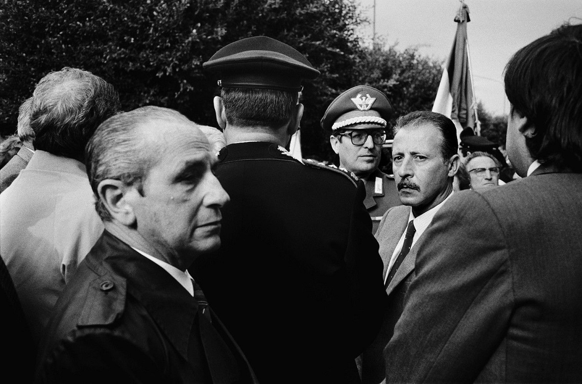 Ed eccolo il giudice Paolo Borsellino che guarda fisso nell’obiettivo di Sgroi al funerale del giovane Biagio Siciliano. Ha un’espressione di una forza totemica, di colui che conosce il bene e il male perché abituato a indagare chirurgicamente i cavilli della zona grigia che li attraversa. Nell’epoca del dubbio, della falsa propaganda, della “fine della metafisica”, dei complottismi e degli inganni iperrealistici delle intelligenze artificiali il sacrificio della propria vita mette a tacere qualunque incertezza sul valore di verità di un’azione.