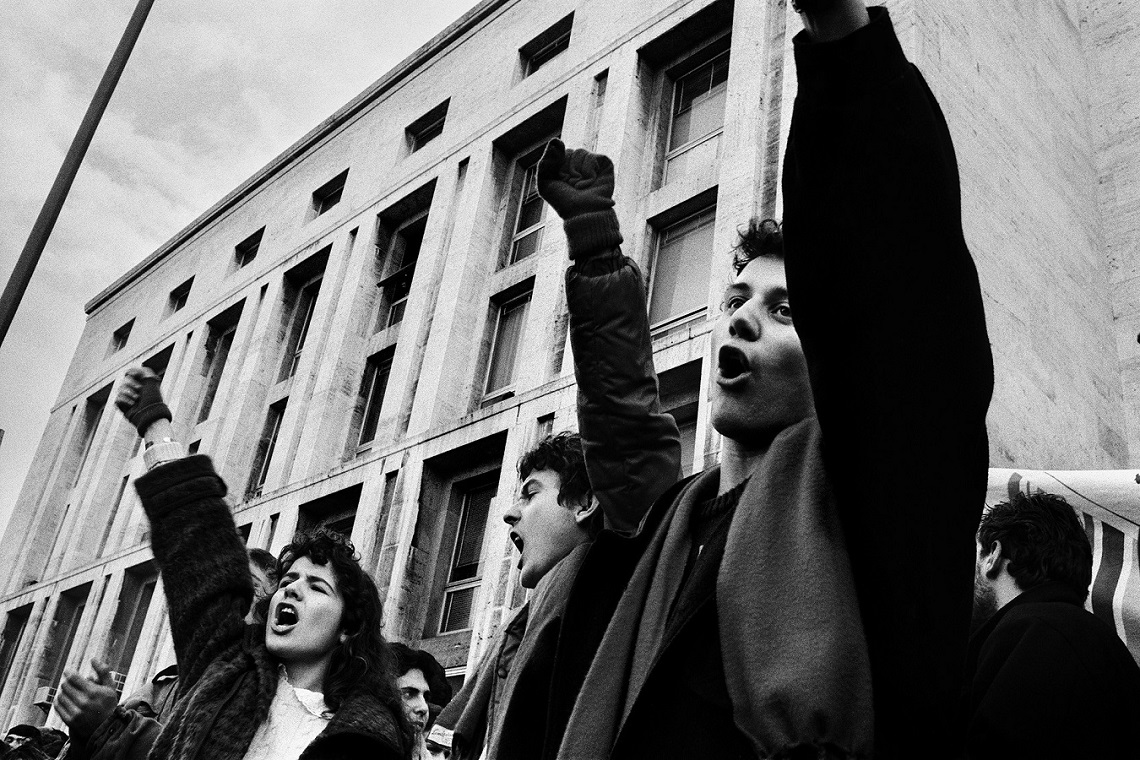 Gli studenti protestano contro il potere occulto della mafia alzando il pugno chiuso nelle manifestazioni. Le linee ideologiche della grande storia intercettano una forza opposta sul piano locale, priva di ideali politici ma determinata a imporre la propria supremazia contro qualunque interferenza libertaria, contro qualunque disegno sociale, che sia di destra o di sinistra. Al funerale di Giuseppe Impastato, attivista politico protagonista della lotta contro Cosa Nostra, era presente l’occhio di Zecchin; il 7 febbraio 1986 a documentare il corteo a cui parteciparono oltre diecimila studenti c’era invece Fabio Sgroi.